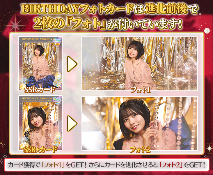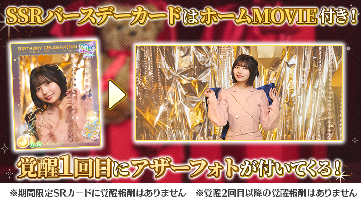 SSRバースデーフォトカードを覚醒させると、追加で「フォト特典」が獲得できます!