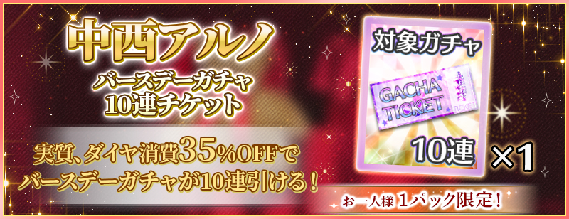 バースデーガチャの『10連』をダイヤを使用して引くと、中西アルノの「覚醒アイテム」を獲得することができます!