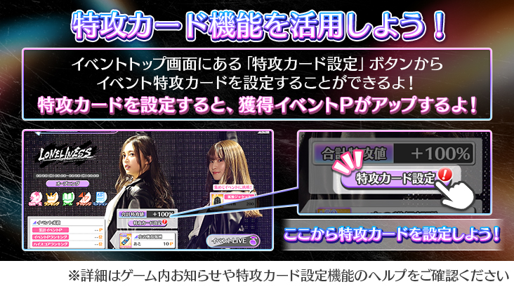 「特攻カード設定機能」の詳細はこちらをご覧ください。