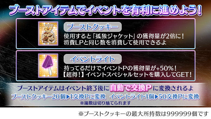 ※本イベントで獲得した「孤独ジャケット」および「イベントP」は次回のイベントには引き継がれません。