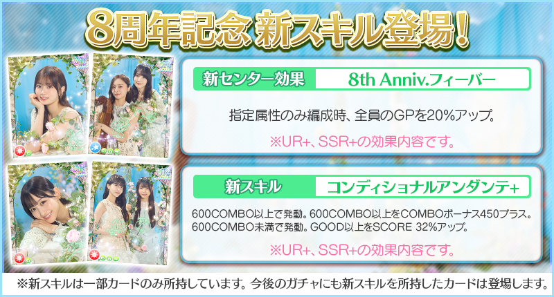 8周年記念ガチャ第2弾から出現する新規限定カードは、12/3(水)から開催する8周年イベント第2弾「Summer Refrain」で特攻効果を発揮します!