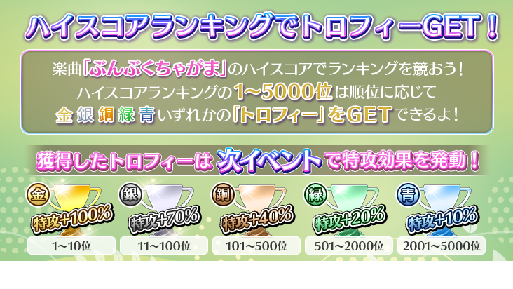 今回のイベントでは、「ぶんぶくちゃがま」のハイスコアでランキングが付きます。