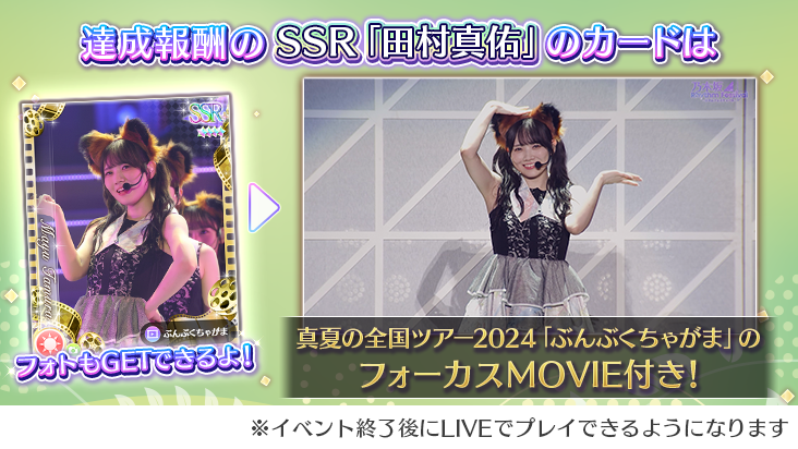 田村真佑のSSRカードはイベントポイント達成報酬にて合計6枚獲得できます♪