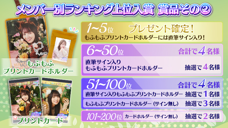 メンバー別ランキング報酬には『もふっと日和』の写真を使用したオリジナルグッズ「もふもふプリントカードホルダー」が登場します!