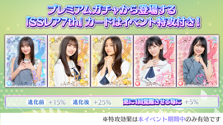 ③プレミアムガチャから出現する「SSレア7th」のカード
