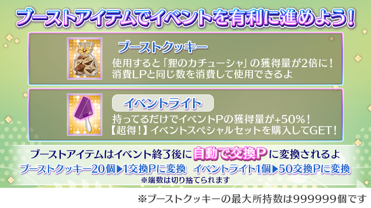 上記日時に所持しているブーストアイテムは「交換P」に変換されます。