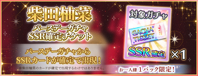 「BIRTHDAYガチャ」は柴田柚菜カードが高確率で出現するガチャです!