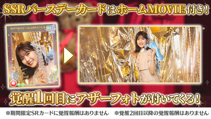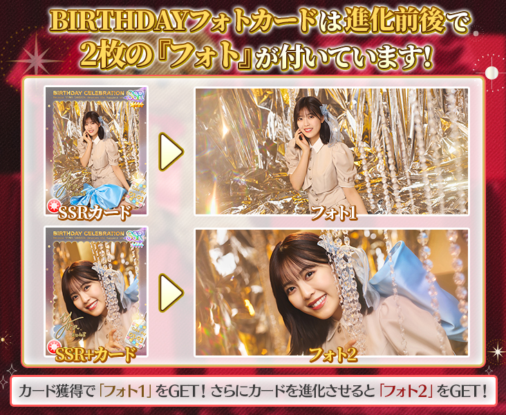 SSRバースデーフォトカードを覚醒させると、追加で「フォト特典」が獲得できます!