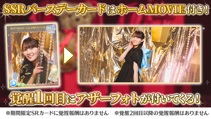 SSRバースデーフォトカードを覚醒させると、追加で「フォト特典」が獲得できます!