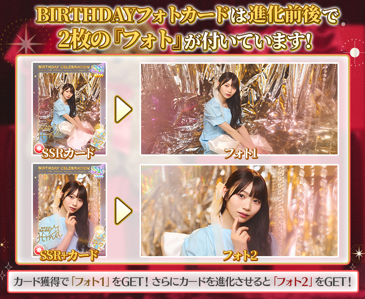 SSRバースデーフォトカードを覚醒させると、追加で「フォト特典」が獲得できます!