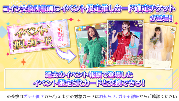 コイン交換所報酬に久保史緒里・賀喜遥香・中西アルノの『SSRカード』が復刻登場!