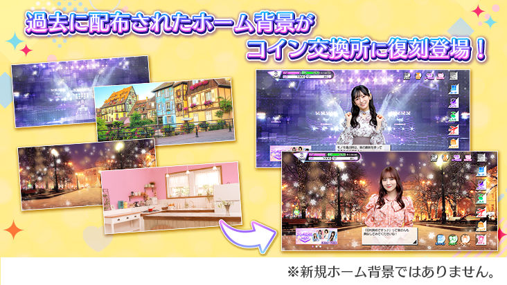 過去に配布されたホーム背景について、既に保有されているユーザー様もコイン交換所にて仕様上交換できてしまいます。