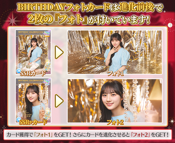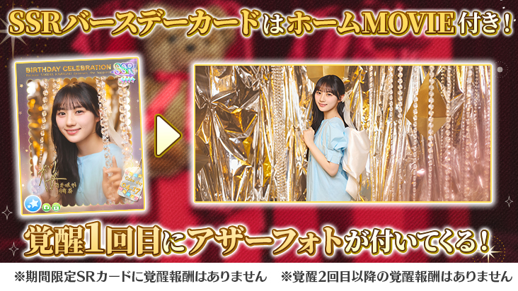 SSRバースデーフォトカードを覚醒させると、追加で「フォト特典」が獲得できます!