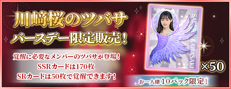 「BIRTHDAYガチャ」は川﨑桜カードが高確率で出現するガチャです!