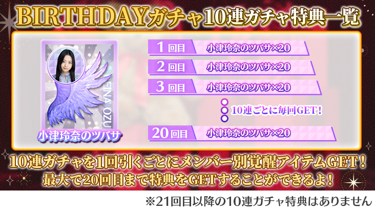 ※本バースデーガチャチケットは対象メンバーのバースデーガチャの10連のみ引くことができます。