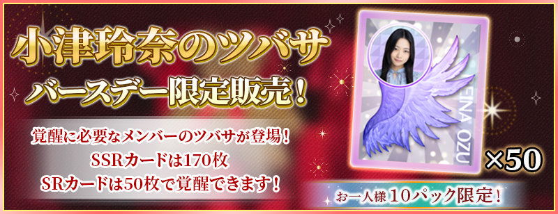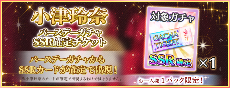 「BIRTHDAYガチャ」は小津玲奈カードが高確率で出現するガチャです!