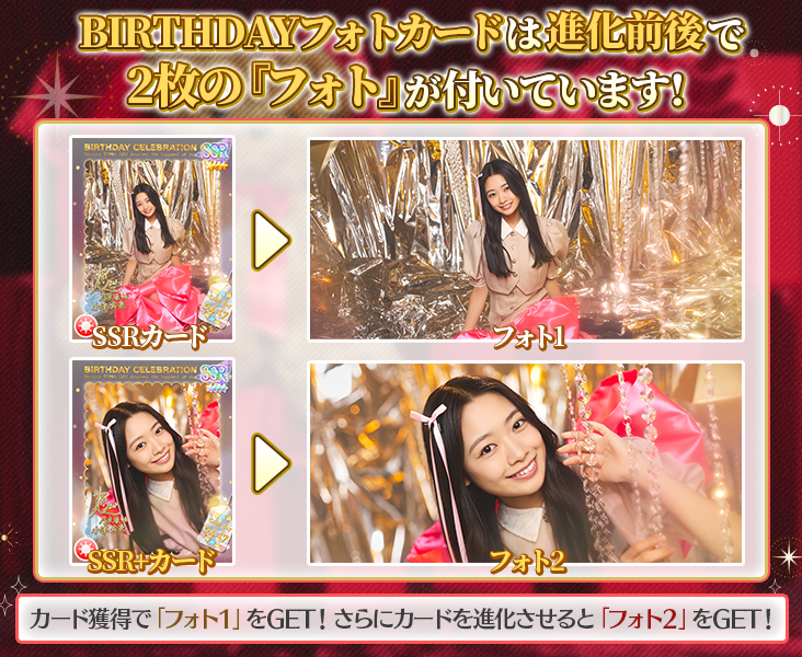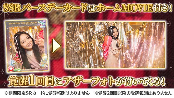 SSRバースデーフォトカードを覚醒させると、追加で「フォト特典」が獲得できます!