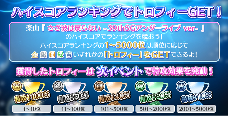 今回のイベントでは、「さざ波は戻らない -39thSGアンダーライブ ver-」のハイスコアでランキングが付きます。