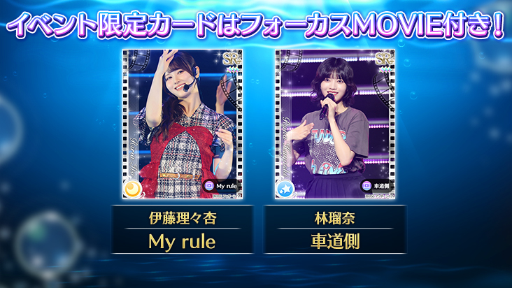 さらに!イベント報酬には伊藤理々杏と林瑠奈の「SSRフォトカード」や「フォーカスMOVIEカード」を獲得できます♪