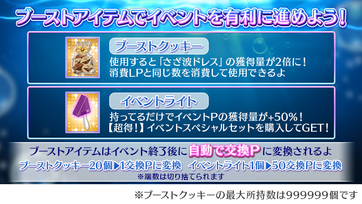 上記日時に所持しているブーストアイテムは「交換P」に変換されます。
