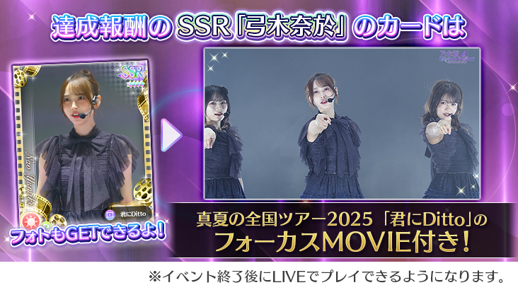 カード報酬①【弓木奈於 SSRフォーカスMOVIE&フォト付きカード(君にDitto)】