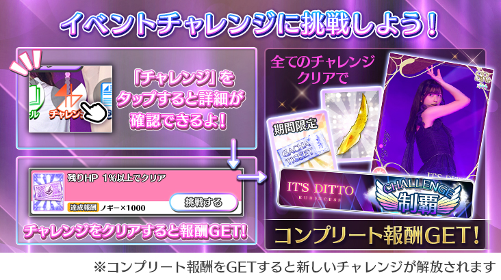 イベントチャレンジをクリアして、限定カードや本イベントの限定称号をGETしましょう♪