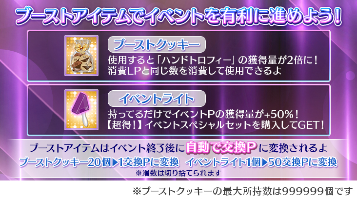 上記日時に所持しているブーストアイテムは「交換P」に変換されます。