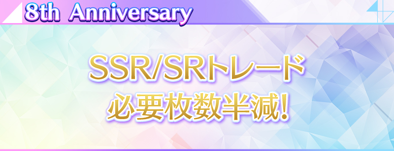 上記期間中、SSR/SRトレードに必要な素材カードの枚数が半分になります!
