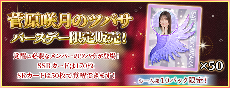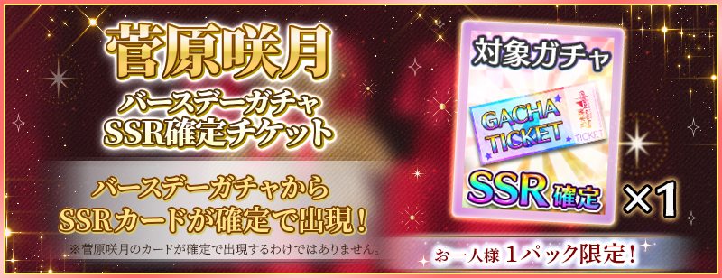 「BIRTHDAYガチャ」は菅原咲月カードが高確率で出現するガチャです!