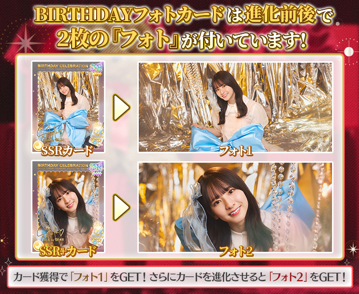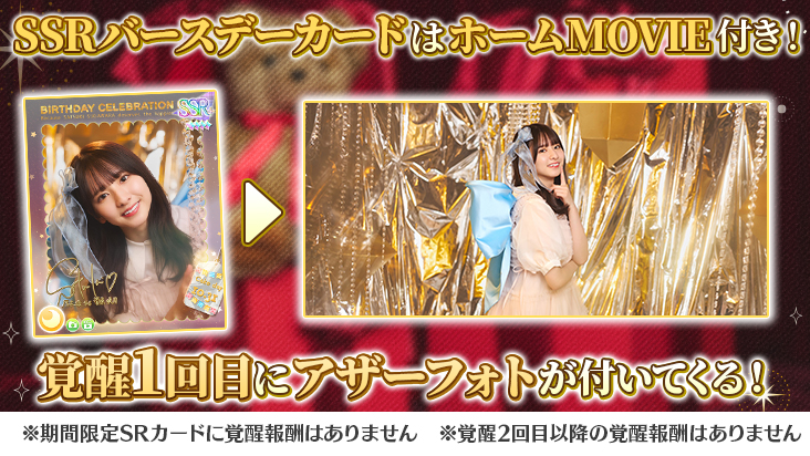 SSRバースデーフォトカードを覚醒させると、追加で「フォト特典」が獲得できます!