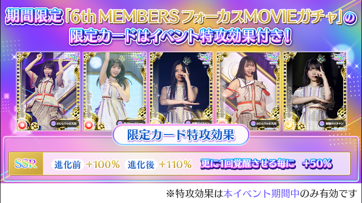 ①期間限定「6th MEMBERS フォーカスMOVIEガチャ」ガチャから出現する限定カード