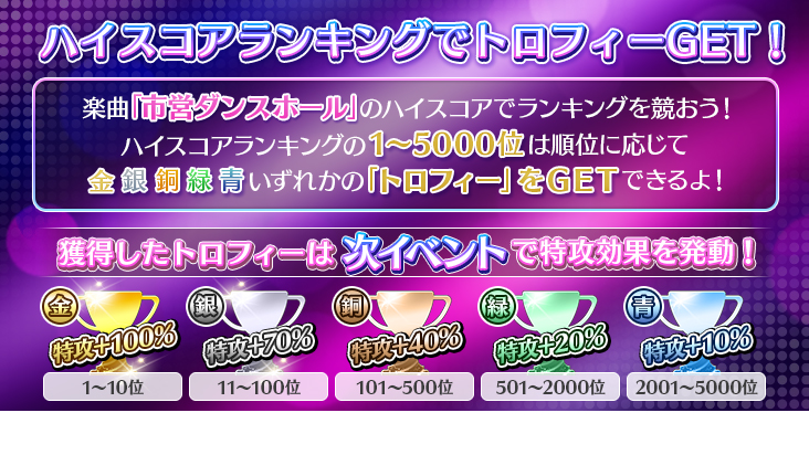 ハイスコアランキングに入賞すると、順位に応じて「トロフィー」を獲得することができます。