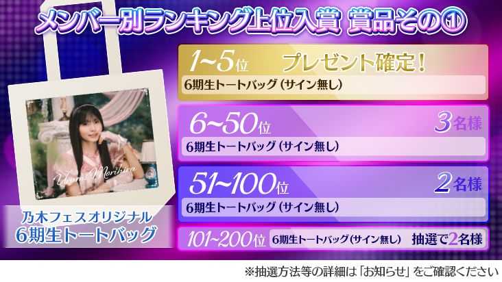 メンバー別ランキング報酬には6期生だけのオリジナルグッズ「6期生トートバッグ」が登場します!