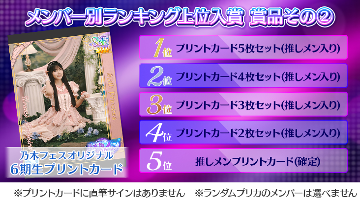 メンバー別ランキング1位~5位には6期生のプリントカードも付いてきます!