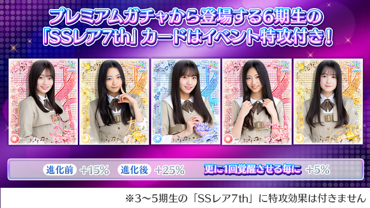 ④プレミアムガチャから出現する6期生の「SSレア7th」カード