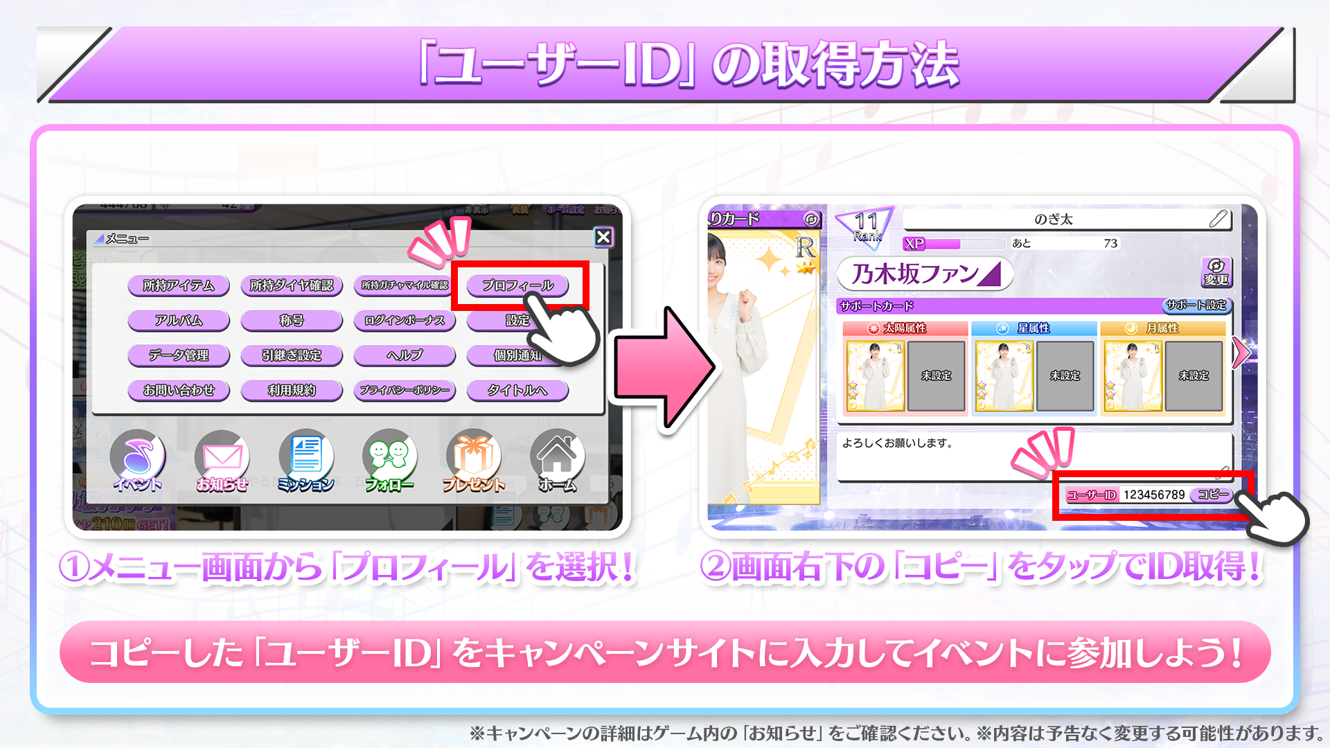 ※乃木フェスユーザーIDの取得方法は下記をご確認ください。