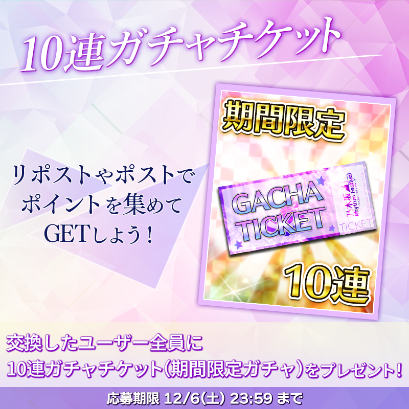 【①期間限定ガチャ10連チケット(※応募者全員プレゼント)】