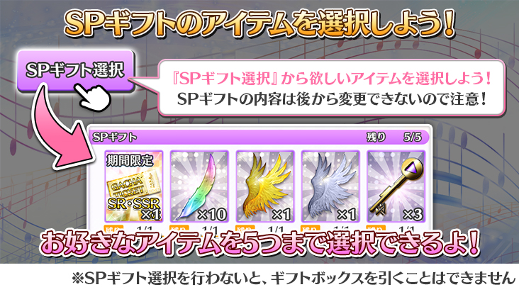 さらに!SPギフトから出現するアイテム『5種』はユーザー様が任意に選択できます♪