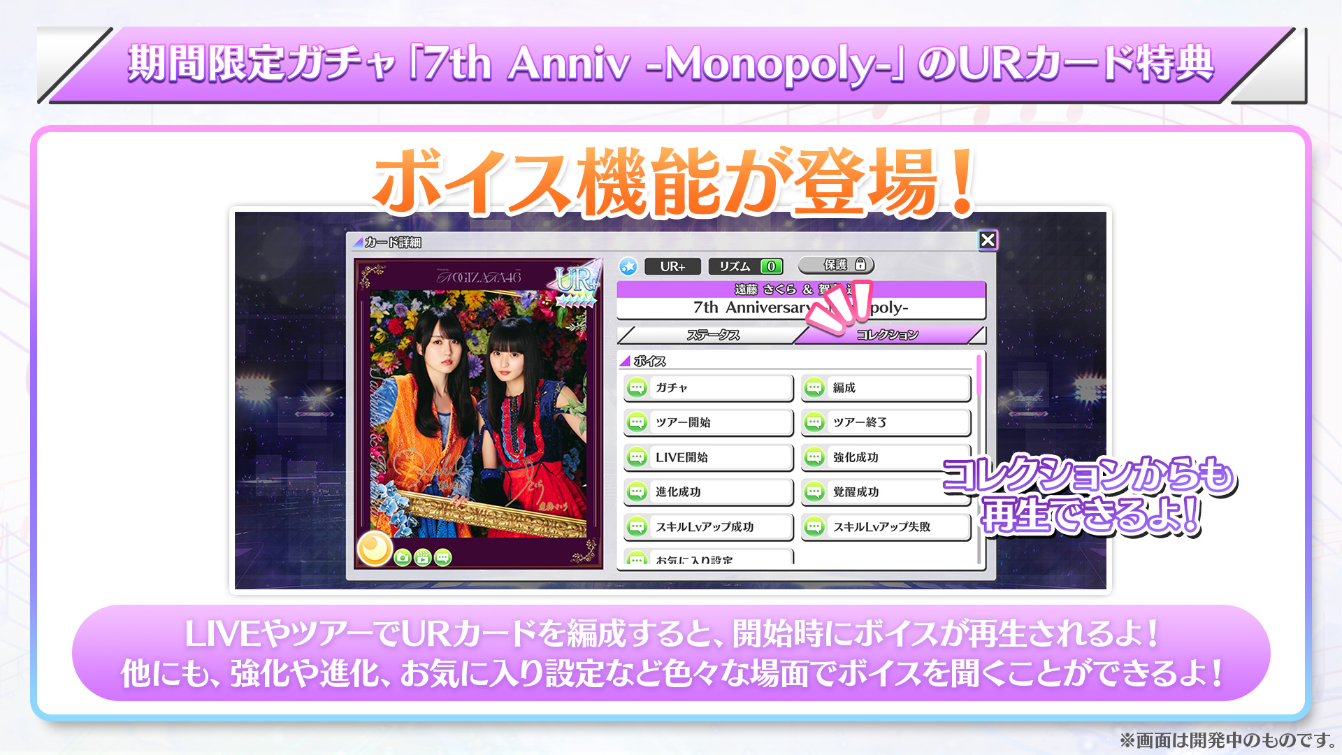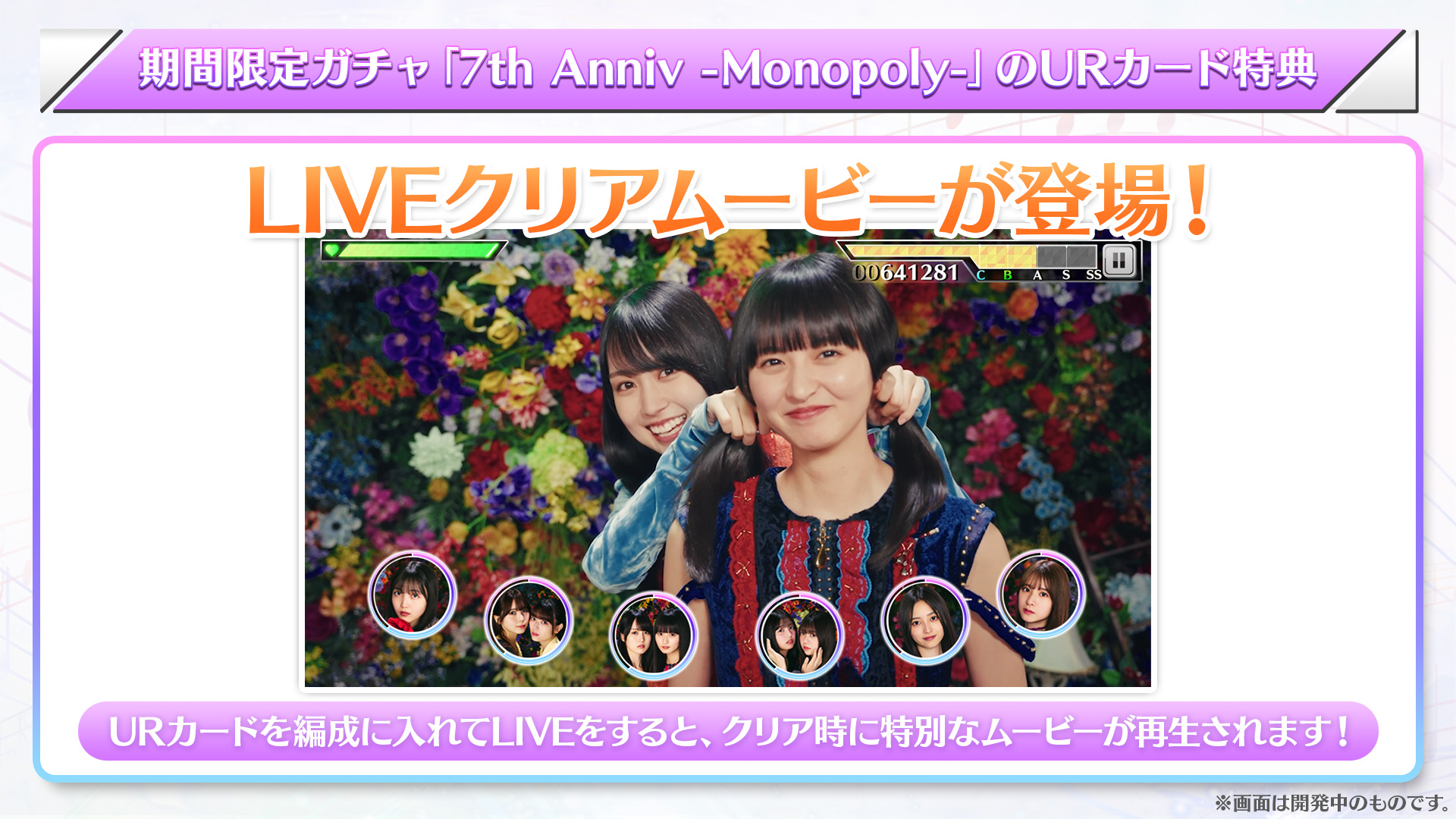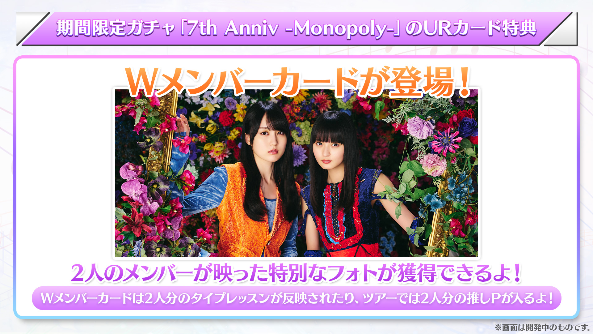 期間限定ガチャ「[復刻]7th Anniversary -Monopoly-」は、34thシングル「Monopoly」をテーマにした『7周年記念カード』が登場するガチャです!
