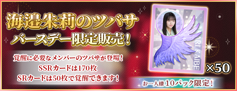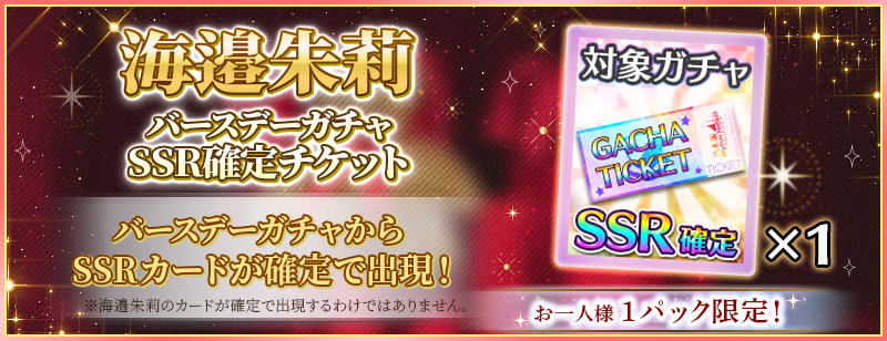 「BIRTHDAYガチャ」は海邉朱莉カードが高確率で出現するガチャです!