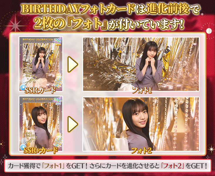 SSRバースデーフォトカードを覚醒させると、追加で「フォト特典」が獲得できます!