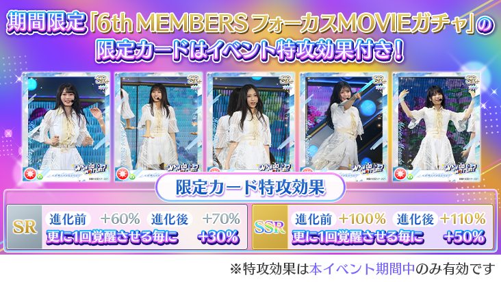 ①期間限定「6th MEMBERS フォーカスMOVIEガチャ」ガチャから出現する限定カード