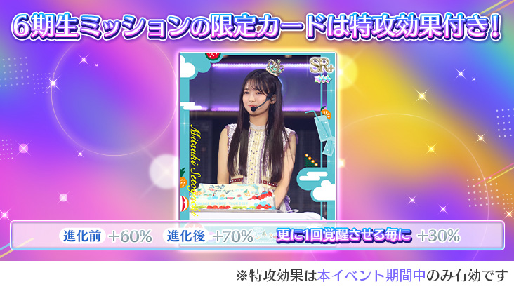 ③期間限定の6期生ミッション達成報酬で獲得できる瀬戸口心月SRカード