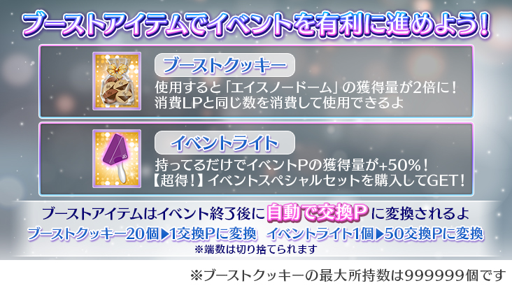 ブーストアイテムはイベント開催後【ショップ】>【アイテムショップ】よりご購入いただけます。