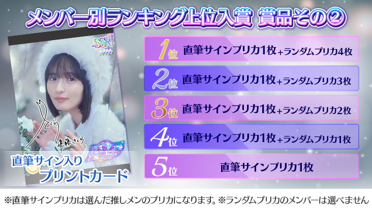 さらに!メンバー別ランキング1位~5位には直筆サイン入りプリントカードも付いてきます!