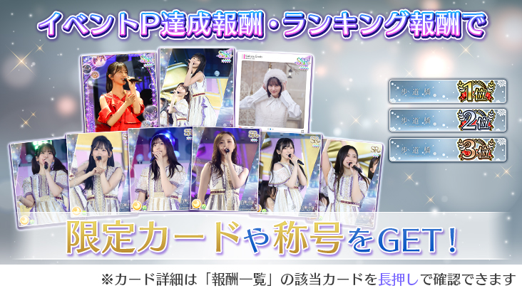 ※メンバー別ランキング報酬にイベント限定カード、ダイヤ、各種アイテム、称号はありません。